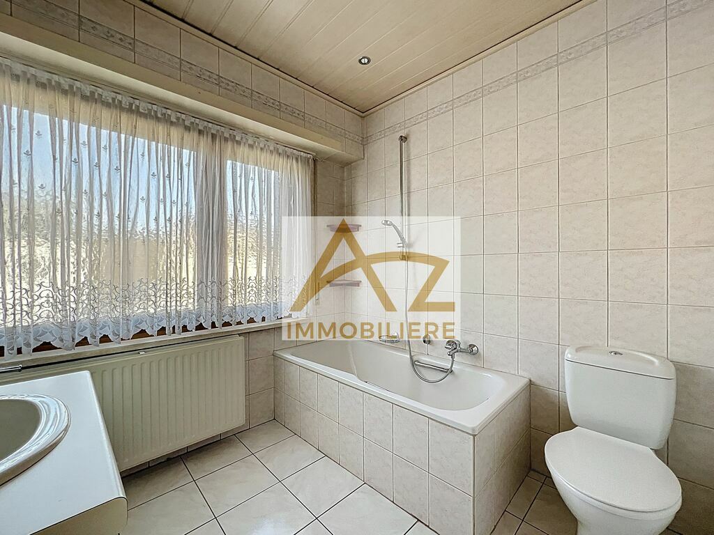 • Salle de bains : WC, baignoire + douchette, lavabo (± 5,66 m²)